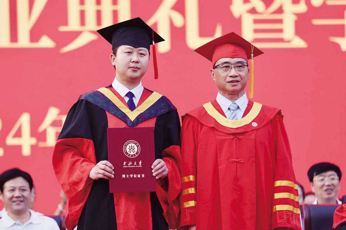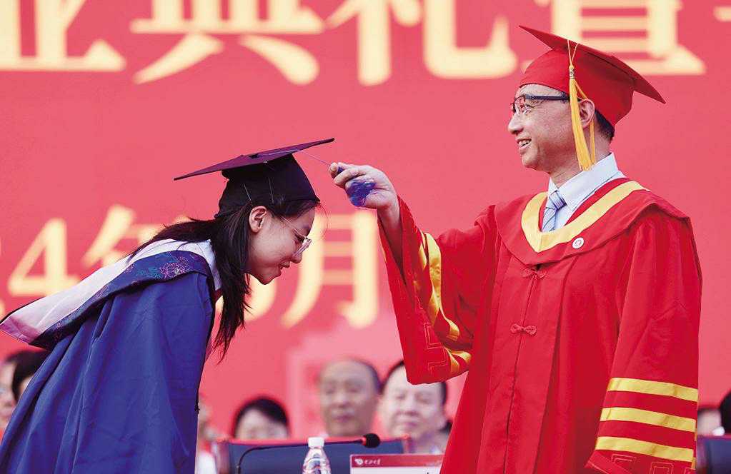 本报讯 毕业不散场,青春永飞扬。6月17日晚,我校2024年毕业典礼暨学位授予仪式在行知广场隆重举行。全校10495名学子顺利完成学业将奔赴山海,逐梦星辰大海。全体校领导,中国工程院院士李魁武,校友代表、各单位负责人,毕业班教师和部分家长参加典礼,共同见证2024届毕业生人生的重要时刻,共同祝福莘莘学子勇毅前行、扬帆远航。校党委副书记、校长陈钱以“青春正当时 奋进新征程”为题作毕业致辞,并为毕业生代表正冠拨苏、授予学位证书,为研究生支教团授旗。大会宣布了关于表彰2024届优秀毕业生的决定,关于拟授予2024届毕业生学位的决定,与会校领导、嘉宾共同为2024届优秀毕业生代表颁奖。本届共有93名研究生和160名本科生荣获“优秀毕业生”称号,61人获博士学位,1798人获硕士学位,8385人获学士学位。