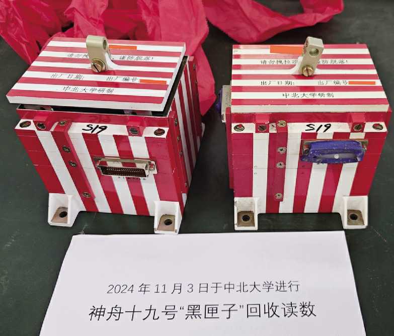 本报讯 北京时间2024年10月30日4时27分,搭载神舟十九号载人飞船的长征二号F遥十九运载火箭在酒泉卫星发射中心点火发射,约10分钟后,飞船与火箭成功分离,进入预定轨道,航天员乘组状态良好,发射取得圆满成功。11月3日,由我校研制、跟随长征二号F遥十九运载火箭一起执行此次发射任务的两个“黑匣子”回收后送回学校,经相关科研人员第一时间完成数据读取,完整获取了火箭飞行过程中的多路图像及力学参数数据。标志着我校科研成果再次成功助力神舟十九号发射任务圆满完成。