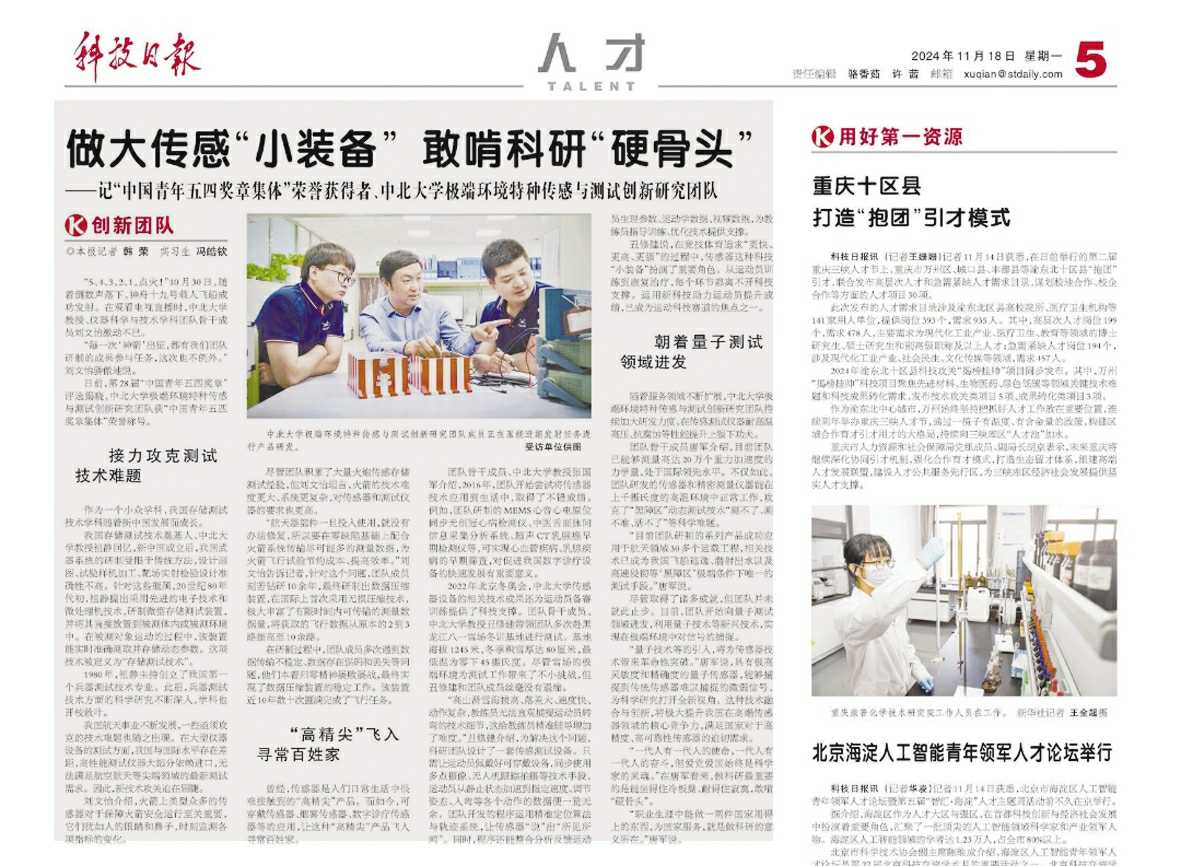 日前,第28届“中国青年五四奖章”评选揭晓,中北大学极端环境特种传感与测试创新研究团队获“中国青年五四奖章集体”荣誉称号。