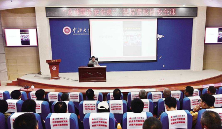 讲座中,相关学院和部门负责人分别结合自身工作内容就学生身心健康、实验室火情、军工保密、安全隐患等相关安全事件进行复盘和总结汇报。