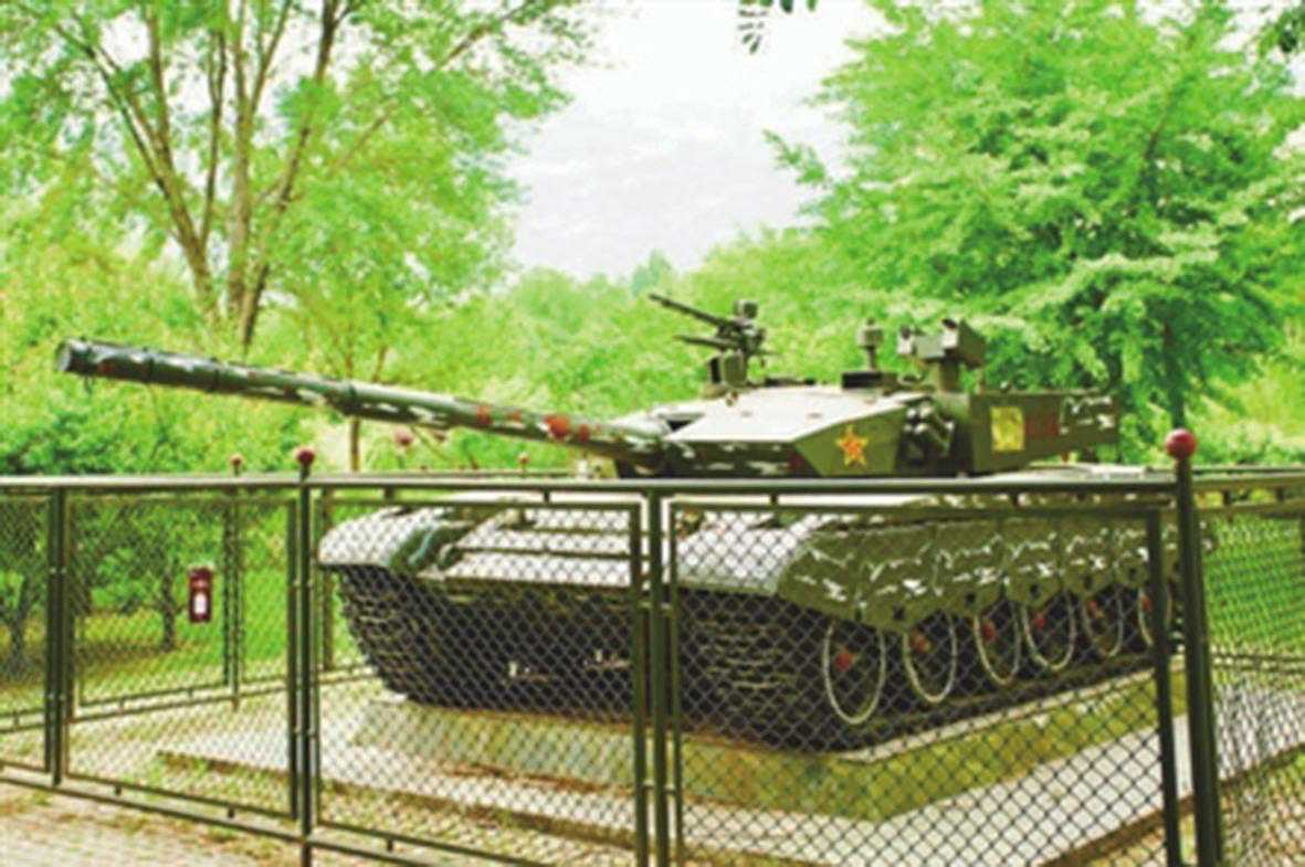坦克坐落在长6米、 宽3.9米、高0.3米的花岗岩底座上,底座四周的平台宽0.9米,用绿色花岗岩镶贴。为保护坦克的完整性,学校专门在四周做了防护网, 并在防护网周边地面铺设了草坪砖。