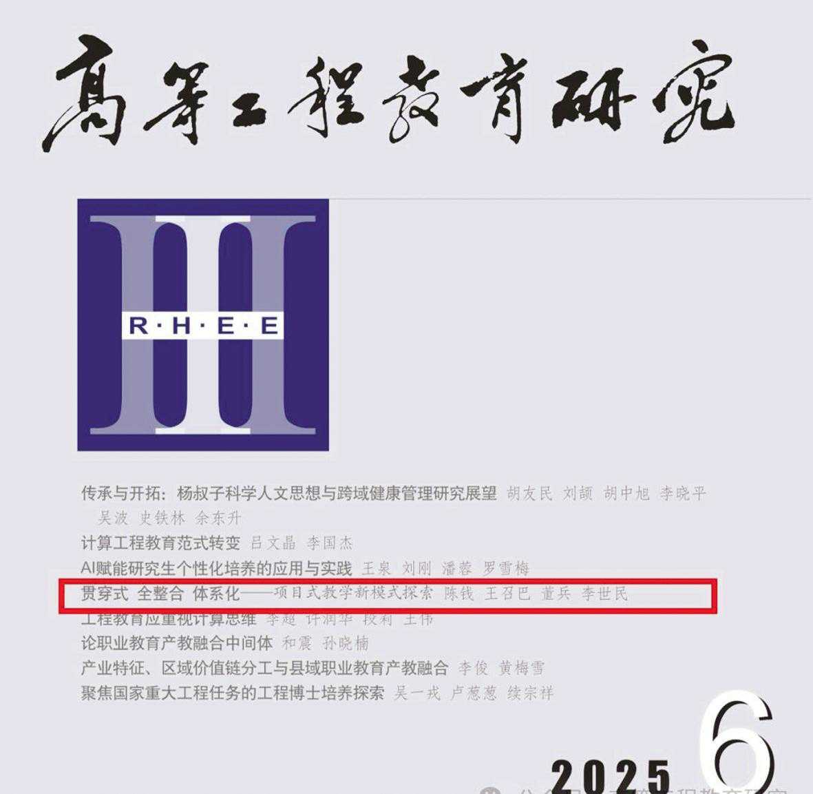 本报讯 近日,校长陈钱在《高等工程教育研究》期刊(2025年第6期)发表题为《贯穿式 全整合 体系化---项目式教学新模式探索》的高水平教育教学研究论文。该期刊为CSSCI来源期刊、全国中外文核心期刊、中国工程院教育委员会会刊、中国高教学会工程教育委员会会刊,是工程教育领域的权威学术平台。